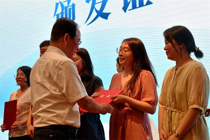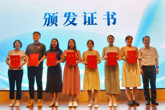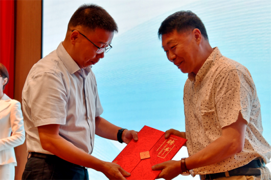 南京市歐美同學(xué)會副會長、棲霞區(qū)歐美同學(xué)會會長程革為燕子磯街道歐美同學(xué)會首屆理事會班子成員頒發(fā)證書。