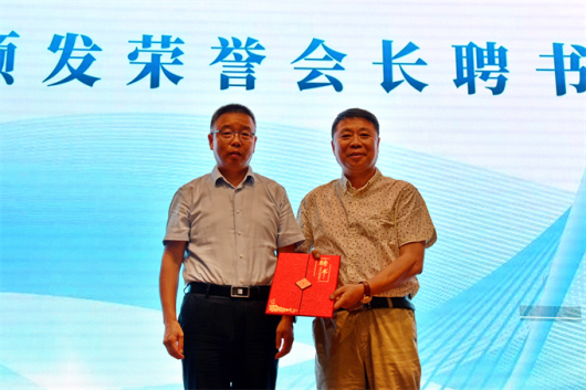 棲霞區(qū)委組織部副部長、區(qū)公務(wù)員局局長王潤和燕子磯街道工委書記劉文剛為新當(dāng)選的棲霞區(qū)燕子磯街道歐美同學(xué)會會長、副會長頒發(fā)燕子磯街道引才大使聘書。