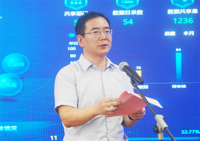 棲霞區委編辦主任劉先明、棲霞區發改委主任陸建尚為“南京市棲霞區城市運行管理中心”揭牌