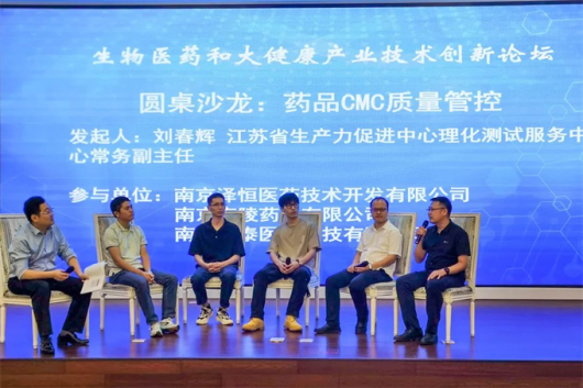 隨后,江蘇省生產(chǎn)力促進中心理化測試服務(wù)中心常務(wù)副主任劉春輝發(fā)起藥品CMC質(zhì)量管控圓桌沙龍。現(xiàn)場氛圍熱烈,會議期間企業(yè)家和老師們進行有益交流,取得預(yù)期的成效。
