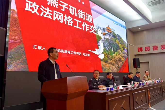 燕子磯街道黨工委書記劉文剛作交流發言