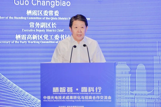 郭昌標(biāo)在致辭中對俄方嘉賓以及與會的領(lǐng)導(dǎo)、專家學(xué)者和企業(yè)家朋友們表示熱烈歡迎和誠摯問候。他指出,棲霞是南京東部的創(chuàng)新高地、產(chǎn)業(yè)新城和科教重鎮(zhèn),國際化程度高,創(chuàng)業(yè)氛圍開放包容;棲霞區(qū)內(nèi)高校院所、光電企業(yè)、產(chǎn)業(yè)園區(qū)、科研平臺如繁星點(diǎn)布,創(chuàng)新動能澎湃。他十分期待俄羅斯的先進(jìn)技術(shù)與棲霞的產(chǎn)業(yè)生態(tài)深度融合,中俄人才實現(xiàn)雙向賦能,推動更多光電合作項目落地棲霞,開花結(jié)果。