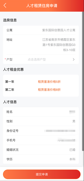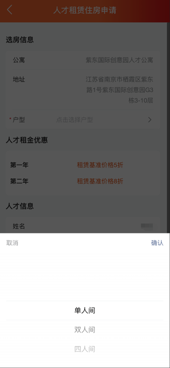 申請人搜索并關注“棲霞區住房和建設局”公眾號,點擊“住房保障”,進入“人才租賃住房”小程序線上申請,在申請頁面可查看房源基本信息,包含房源戶型實景、基礎配套圖片(照片僅供參考,房源以實際為準)、每種套型房源的租賃面積、租金標準等;申請人填寫個人基本信息并上傳相關附件資料,確認無誤后選擇有意向的房源后點擊申請入住即可。