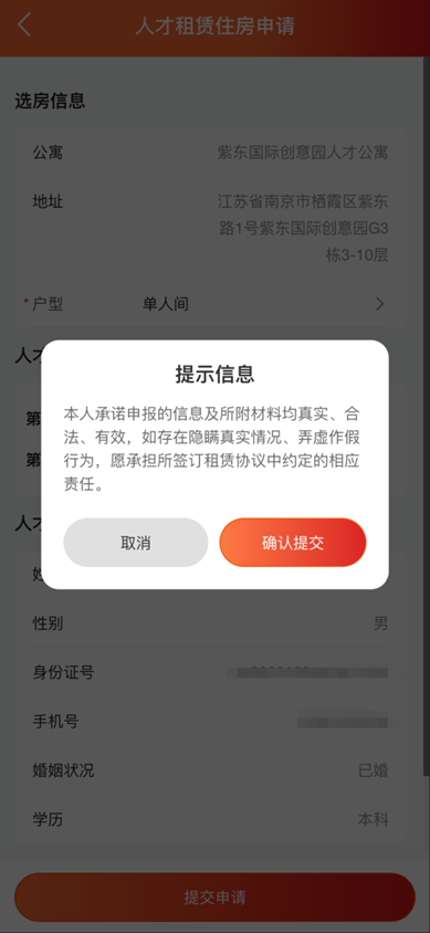 5. 提交申請后,在“我的申請”中可實時查看審核進度,人才租賃住房運營管理單位原則上1個工作日內完成審核并通知符合條件的申請人簽約入住。